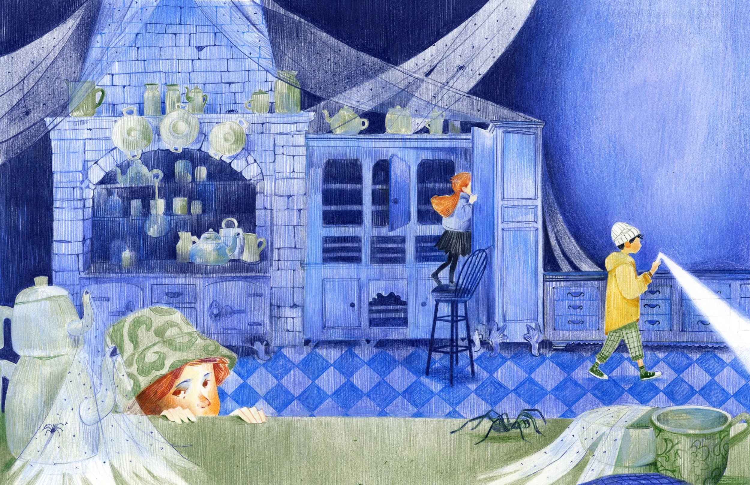 I illustrated The Night at the Manor, the third album in the "Histoire à trois vitesses" collection by Camille Von Rosenschild, a story of three adventurers exploring a haunted manor in search of the ogre and witch’s family.